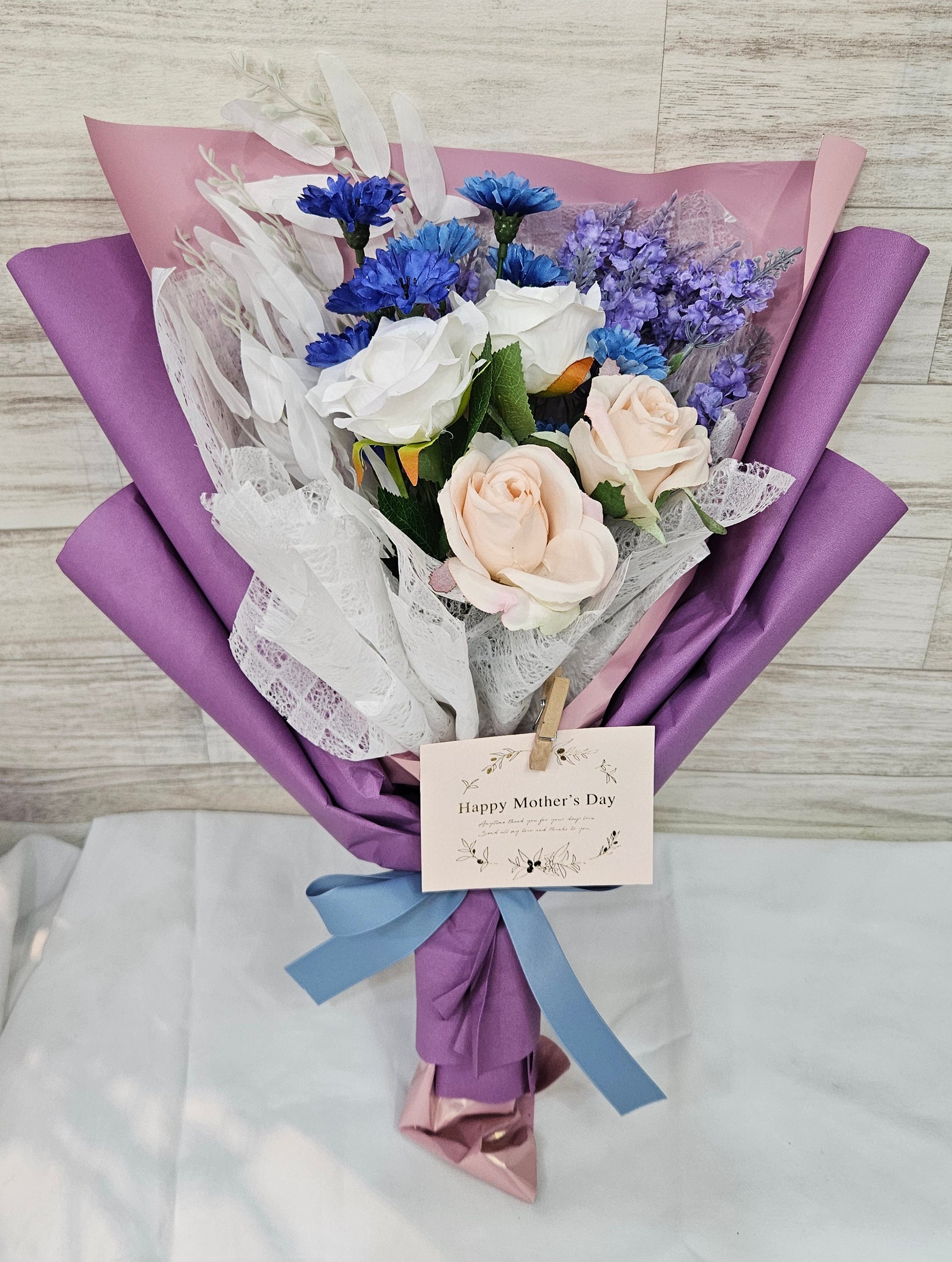 ラベンダー・ブルーなど寒色系のお花でお作りしました。