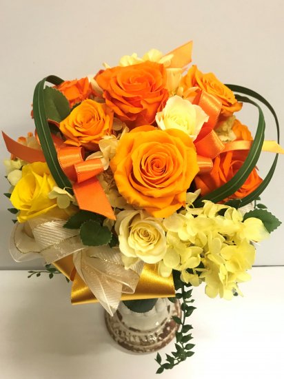 貴賓溢れるオレンジをベースカラーに永遠に輝くプリザーブドフラワーをアレンジに。