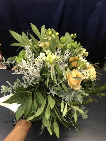 イエローが少し入ったグリーンたっぷりのナチュラルブーケ