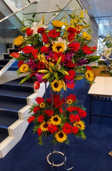 お誕生日や開店祝に贈るスタンド花です。